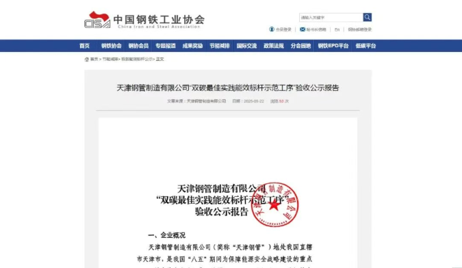 近日,天津钢管电炉工序“双碳最佳实践能效标杆示范工序”验收公示报告在中钢协官网公示,这标志着天津钢管电炉工序达到全国能效标杆水平,也成为全国第19家能效标杆公示的企业。
